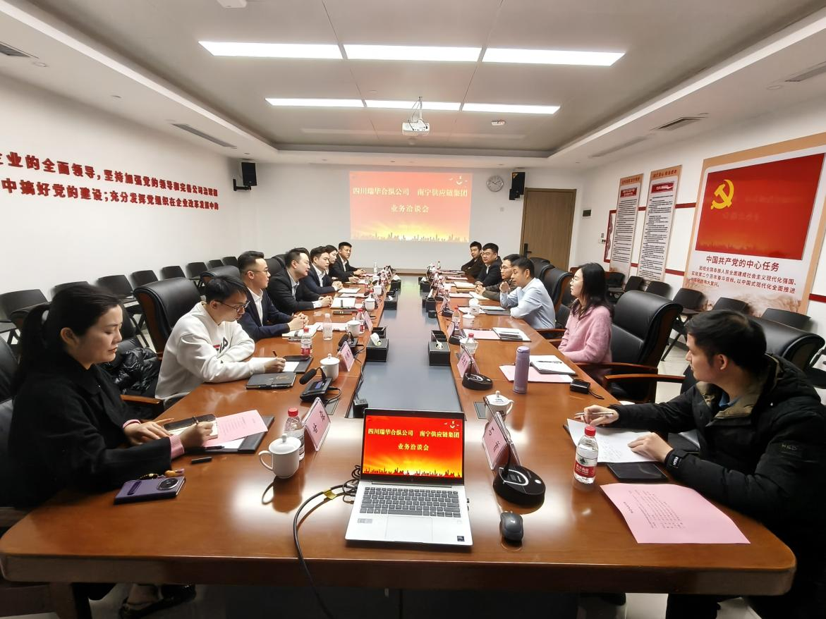 1月13日,公司一行转赴广西南宁市,与南宁供应链集团有限公司(以下简称“南宁供应链”)举行业务洽谈会。双方围绕大宗贸易合作,结合各自优势与发展规划,进行了深入且务实的交流。